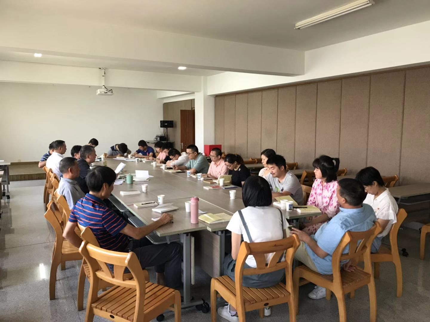 2019年9月29下午,中共金華市建筑設計院有限公司支部委員會在龍源大廈11樓小會議室開展主題黨日活動,吳學敏書記組織全體黨員共同學習了《習近平新時代中國特色社會主義思想學習綱要》的開篇,即“習近平新時代中國特色社會主義思想是黨和國家必須長期堅持的指導思想”。24名黨員出席會議,4名退休人員因病因事請假。與會同志通過學習有了新的體會和認識。